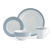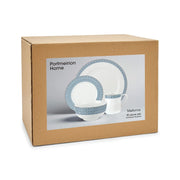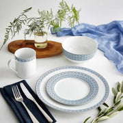 Brighten up family meals with the Mallorca 16-piece set from Portmeirion Home. This stylish dinnerware set includes 4 dinner plates, side plates, cereal bowls, and mugs with gorgeous blue geometric borders. Crafted from durable porcelain, this set allows for quick and easy convenience - microwave and dishwasher safe!