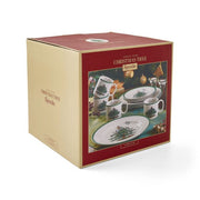 Add some festive cheer to your table with this 12-piece dinner set. Includes dinner plates, side plates, and mugs with a charming Christmas Tree design. Microwave, dishwasher, and oven safe for easy use.