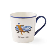 With a striking navy-blue handle and charming illustration, this fine china mug from the Doodles collection makes a wonderful gift. Designed by Willow Kemp, the painted sketch of a suited man enjoying his blue sofa is accompanied by the playful tagline, 'Sofa So Good'. Dishwasher safe, this cup is perfect for everyday use. A wonderful present for all occasions, gift as a spontaneous treat, thank you, or congratulations.