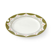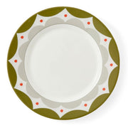 Let the bold design of Geo take you on a colorful journey with this stylish set of 4 dinner plates. Created by celebrated British designer, Kit Kemp, each plate features an eye-catching geometric border in shades of green, gray and orange to create memorable moments with family and friends. Use alone with the matching side plate and rice bowls from the collection or layer with the Tall Trees salad plates for a mix-and-match tablescape your guests will adore. Microwave and dishwasher safe.