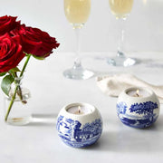 Illuminate your space in timeless style with this set of 2 Blue Italian Tealight Holders. The iconic blue and white design wraps around the curves of the porcelain candle holders, creating two beautiful additions for your shelf, sideboard or table. Made to hold small tealight candles, add a gentle glow to intimate dinners and cozy evenings. A delightful addition to your Blue Italian collection or a thoughtful gift for someone special.