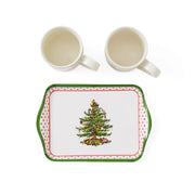 The Christmas season calls for warming tipples and scrumptious treats, and this Polka Dot Mug and Tray is perfect for just that. Serve up an indulgent hot chocolate or a spice-infused mulled wine alongside a warm mince pie or two, with this fun and festive set. Part of Spode's much-loved Christmas Tree collection, the two porcelain mugs and melamine tray feature the iconic Christmas Tree design with a playful green and red spot print adding an extra touch of seasonal colour.