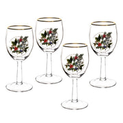 Indulge in mulled wine or a classic red with style thanks to this set of four wine glasses. Each is adorned with a festive gold rim and a holly and ivy motif in green and red. Complete your Holly and Ivy-themed table setting with this Christmas glassware, or use them for a subtle but festive touch on their own.