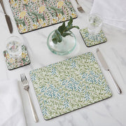 Make dining a dream with these unmistakably Spode Morris & Co. placemats. Each placemat in the set of six is decorated with a different William Morris heritage design for an on-trend mix and match look that’s sure to be the talk of the table. Featured designs include the ever-elegant Pimpernel, Willow Bough, Seaweed and Apple patterns. Pair them up with the identical set of six coasters and play with classic patterns across your table. Cork-backed and sealed for heat and stain resistance.