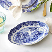 This exquisitely-crafted porcelain dish features a stunning 200-year-old pattern surrounded by an intricate Imari oriental border. Its soft, fluted edge and versatile design make it perfect for serving both hot and cold dishes. Plus, it's microwave, oven, and freezer safe, and can easily be cleaned in the dishwasher. Add this beautiful dish to your Blue Italian collection today!
