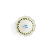 The Botanic Garden Bouquet Covered Sugar has a cute sweet pea design around the bowl and comes with a lid that features an adorable butterfly, framed by the classic Botanic Garden triple leaf pattern. This 8.5-ounce sugar bowl is the perfect size for holding sugar or your go-to sweetener, and it adds a lovely touch to your countertop or table.