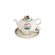 The delightful Botanic Garden Bouquet Tea for One set includes a teapot, cup, and saucer, all designed in our iconic Botanic Garden pattern. The teapot is adorned with a cyclamen motif, while the cup features sweet peas and pansies. This charming set stacks perfectly and makes a wonderful gift for anyone who enjoys tea.