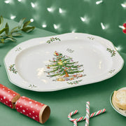 Display your holiday treats in style with our Christmas Tree Sculpted Oval Platter, expertly designed by our in-house team and featuring vintage Spode Christmas Tree imagery. It's also freezer and oven safe, making meal prep a breeze while you spend time with loved ones.es.