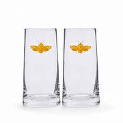 Step into the curious world of Spode with this beautifully chic Creatures of Curiosity Highball Glass Tumbler Set. From cocktails to gin and tonic, these glass tumblers will add a special touch to any drink. Featuring an elegant 22 carat gold moth motif, this highball glass set has been inspired by the Victorian obsession with all things wild and wonderful for an exquisitely intriguing look. Beautifully boxed, this pair of glasses makes a wonderful gift – if you can bear to part with them.